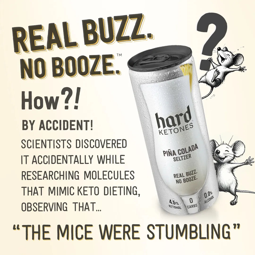For the sweetest introduction, we recommend this Pina Colada flavor 🍍🥥🍹 especially for those focused on taste. Just 90 superfood calories per can, zero sugar, carbs or caffeine. Sweetened with monkfruit and stevia. Subtly sweet and refreshing, reminiscent of the classic Pina Colada. More taste tolerant drinkers may prefer the other options. The Healthiest Buzz: No longer do you have to deal with the devil for a decent Buzz– Hard Ketones is your knight in shining aluminum– the Holy Grail of alcohol alternatives 🏆 ✅ Real Buzz. No Booze. No THC (nor CBD, kava, kratom). ✅ Curbs appetite. No drunchies. ✅ Zero carbs. No empty calories. ✅ Non addictive. No craving for more. ✅ Better sleep. No toxic hangovers. Look better, feel better and be better by drinking better. It’s that simple 😎🎉 Hard Ketones with patented Ketohol are the New Superior-To-Alcohol alternative, with the added benefits of ketones– a superfood 💪🧠. Have your buzz and drink it too! What’s the Buzz like? 🍹⚡ Some say the buzz is somewhere between THC and alcohol. It helps you to relax and unwind, without the many unwanted side effects and health risks. Buzz now, no crash later. You should just feel normal (if not better) after the buzz wears off 💆♂️✨. Who is it for? 🎯 Adults (21+) who enjoy an evening buzz, but want to moderate or avoid the negative effects of alcohol. With Hard Ketones you can catch a buzz without taxing your next-day appearance, productivity and health. 🚀💡🏋️♂️ Science found a way! 🔬 Many have successfully quit alcohol all together– and then quit Hard Ketones after 30-90 days. It’s a lot cheaper and easier than rehab if you are actively seeking to quit boozing. How does it taste? 👅 Ketohol, the special buzz ingredient, is bitter and unlike anything you’ve tasted—it may take some getting used to. Imagine trying alcohol for the first time🍸🔥! We do our best to mask it, and while most enjoy it, some don’t. It won’t taste like a 30g of sugar mocktail, it’s an acquired stevia based zero carb taste which provides function over flavor. What is Ketohol? ⚡🥃 Some compare it to Synthehol from StarTrek– a futuristic synthetic alcohol that mimics booze without the lingering effects 🖖🛸. But Ketohol goes a step further, metabolizing into healthy ketones– a superfood that your body naturally makes when fasting. So, it’s more like Synthehol: The Next Generation ✨ Who is it NOT for? 🚫 Not for pregnant women 🤰❌. SSRIs (except low dose) and Kratom users tend not to feel it. ⚠️Do not drive if impaired 🚗 Too good to be true 😇? Well, the patented ingredient, Ketohol, is not cheap to make 😖. But Hard Ketones are still cheaper than THC drinks, that late night pizza, missing work, divorce lawyers, or rehab. This Piña Cloada seltzer contains 15 grams of Ketohol per 12oz can and is sweetened with monkfruit and stevia. It's important to note that if you're sensitive to the taste of stevia, this drink may not align with your preferences.