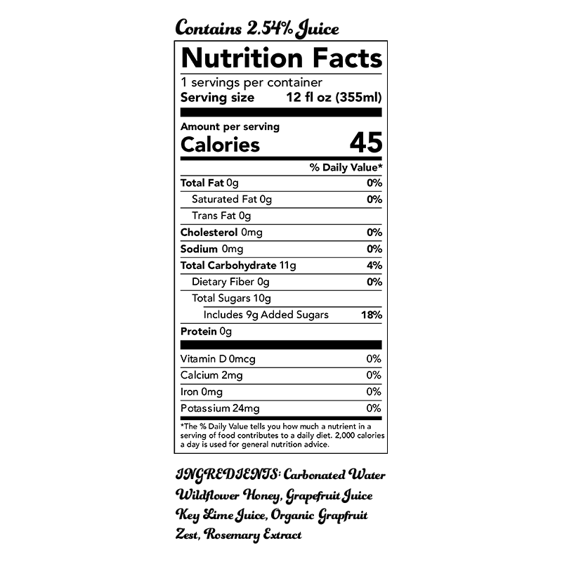 Delicious on its own or use as a mixer, Siponey Botanics pairs perfectly with a spirit of your choice — we recommend Tequila, vodka or gin. Inspired by a classic Paloma cocktail with our signature Certified Organic wildflower honey from New York State. Only 10 grams of sugar and 45 calories.